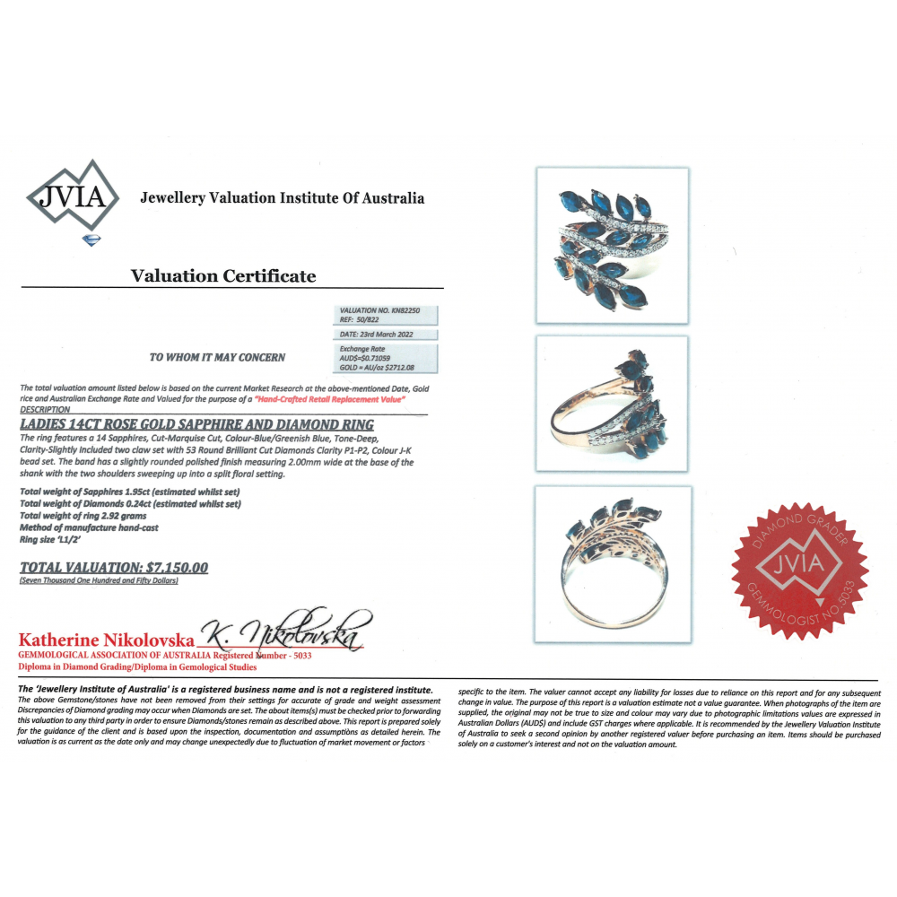 1.95ct Rose Gold Blue Sapphire and Diamond Fern Style Ring