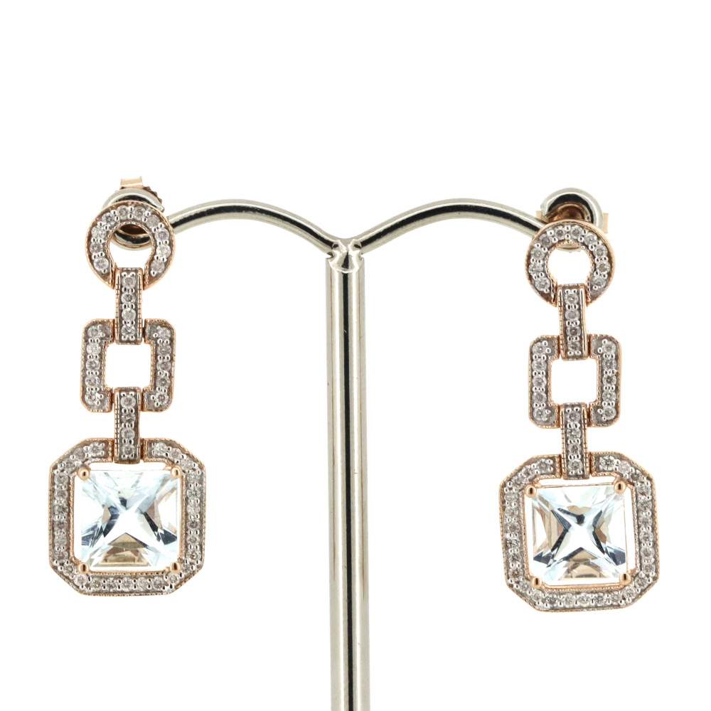 - Design: Elegant drop earrings featuring radiant Aquamarines with brilliant Diamond accents