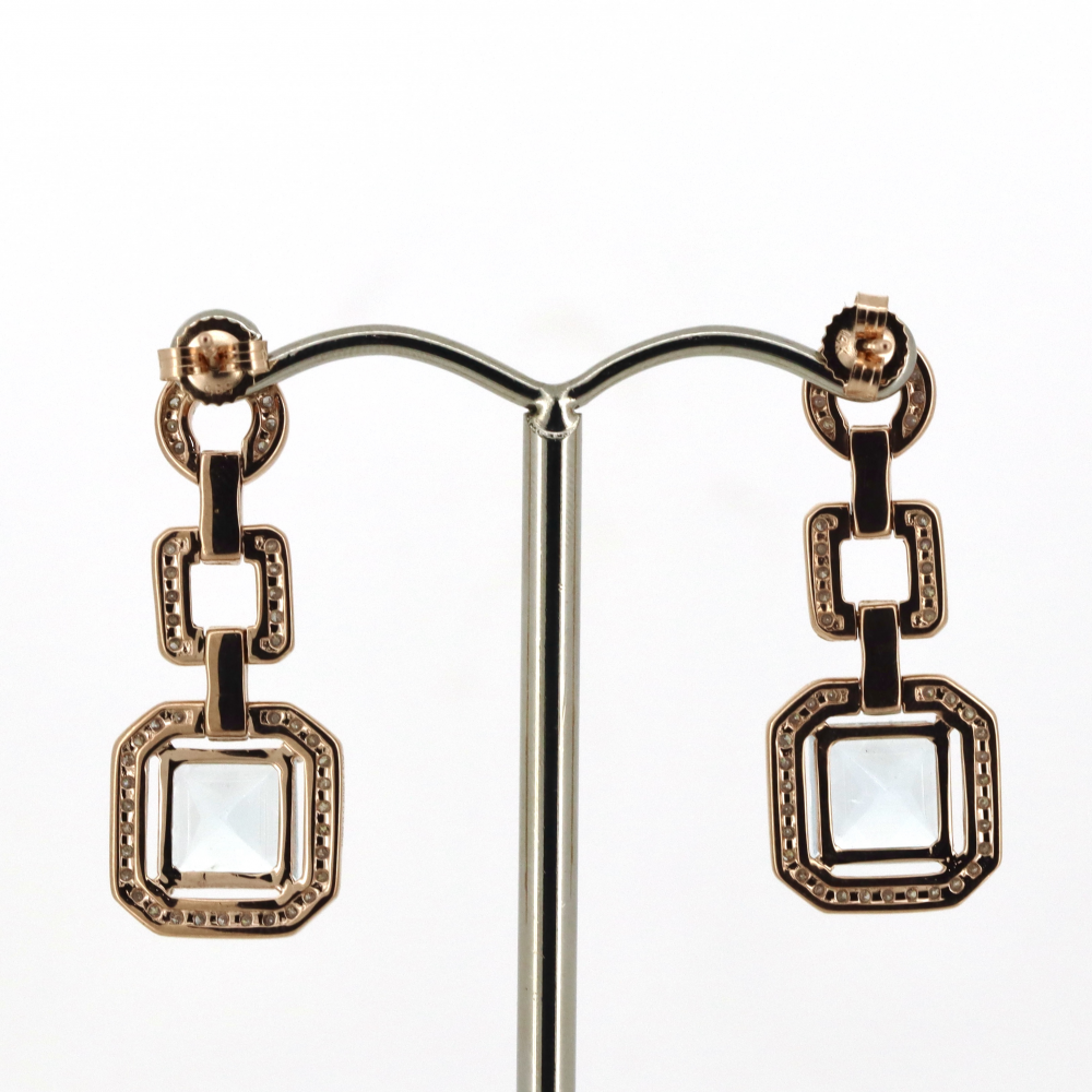 Elegant and refined, these 14K Rose Gold Aquamarine and Diamond Drop Earrings exude timeless beauty with a touch of vintage charm.