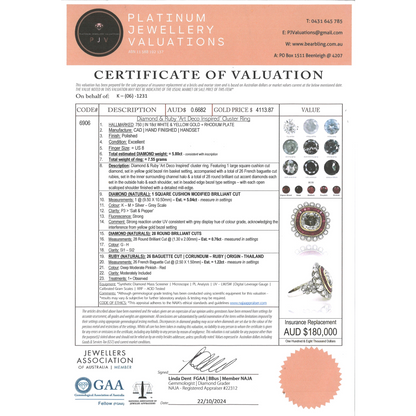 5.04ct Diamond and Ruby Art Deco-Inspired Ring