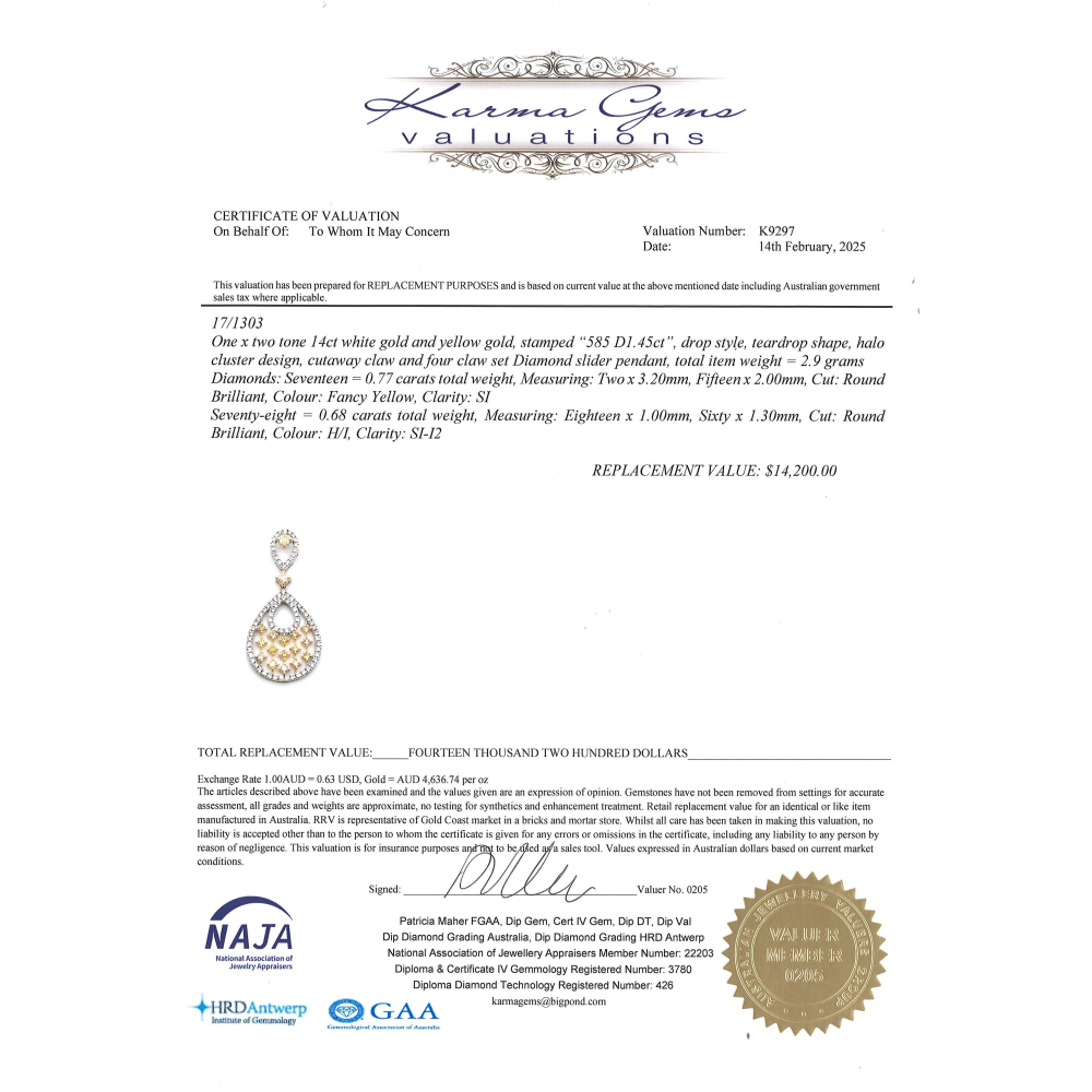 This Insurance Valuation has been provided by a registered Jewellery Valuer and is intended for insurance purposes only. The valuation amount has no bearing on the auction value of the item. Any questions regarding the valuation should be directed to the issuing Valuer (refer to contact details on the certificate) as Luxe Auctions have no association or relationship with the Valuer, or the valuation amount contained within the valuation.