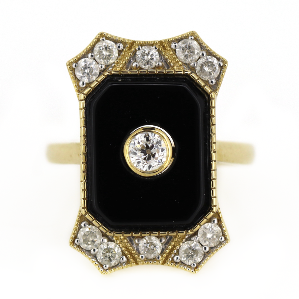 Yellow Gold Onyx and Diamond Art Deco Inspired Ring