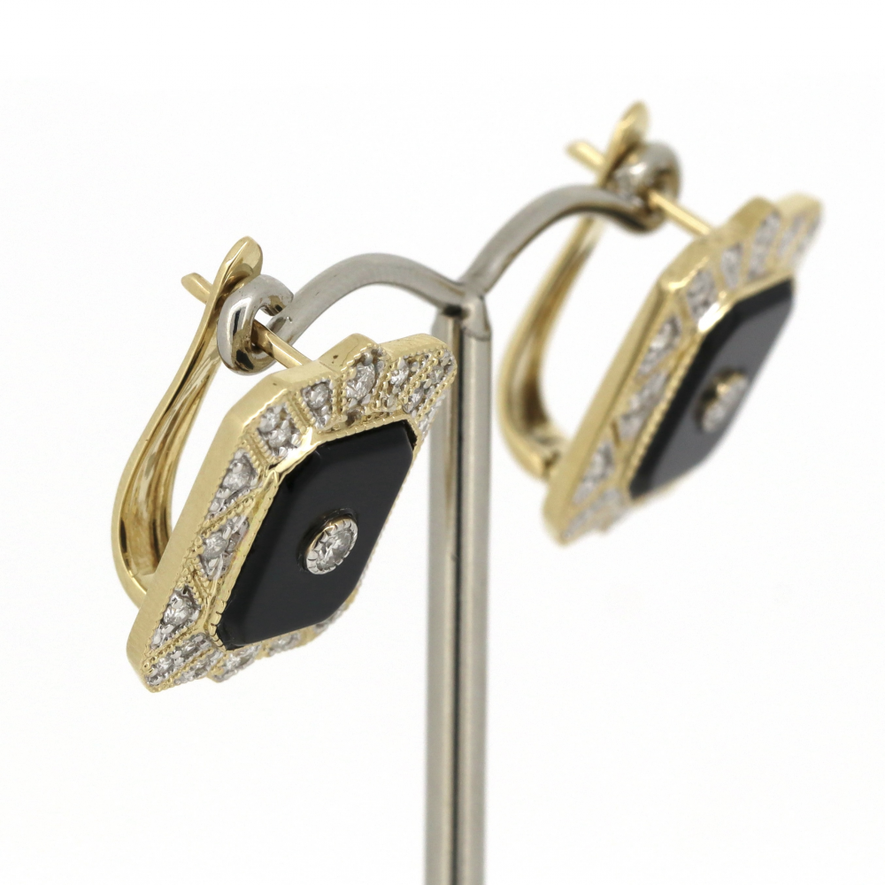 Yellow Gold Onyx & Diamond Huggie Earrings