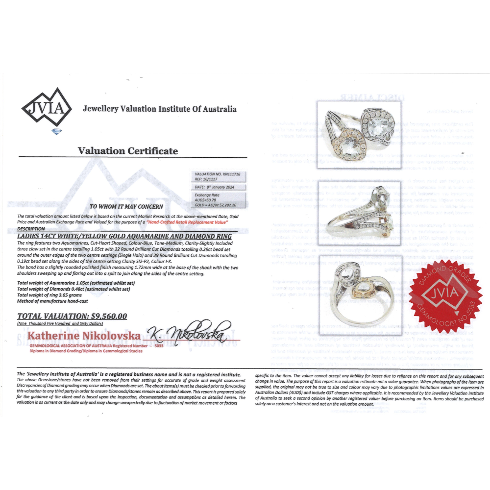 This Insurance Valuation has been provided by a registered Jewellery Valuer and is intended for insurance purposes only. The valuation amount has no bearing on the auction value of the item. Any questions regarding the valuation should be directed to the issuing Valuer (refer to contact details on the certificate) as Luxe Auctions have no association or relationship with the Valuer, or the valuation amount contained within the valuation.